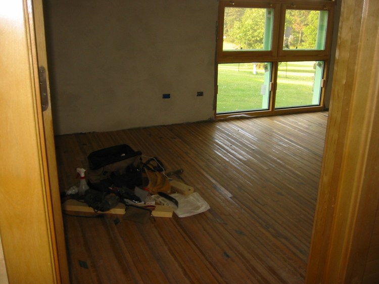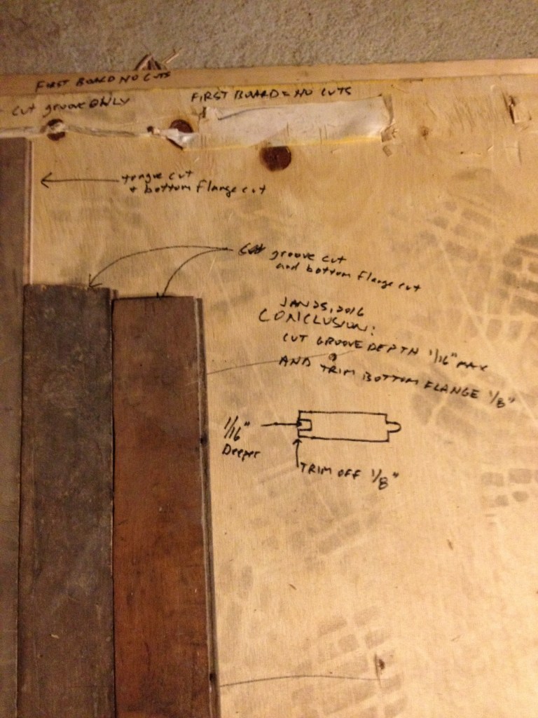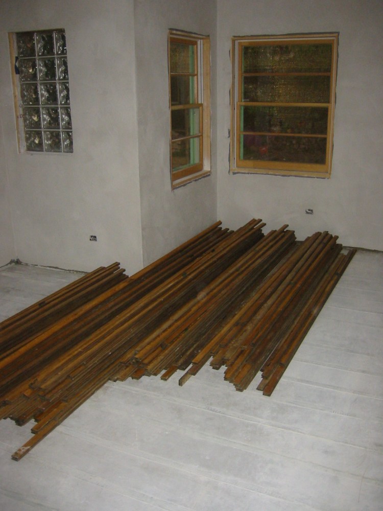 Old maple tongue and groove flooring. Modified for re-installation.